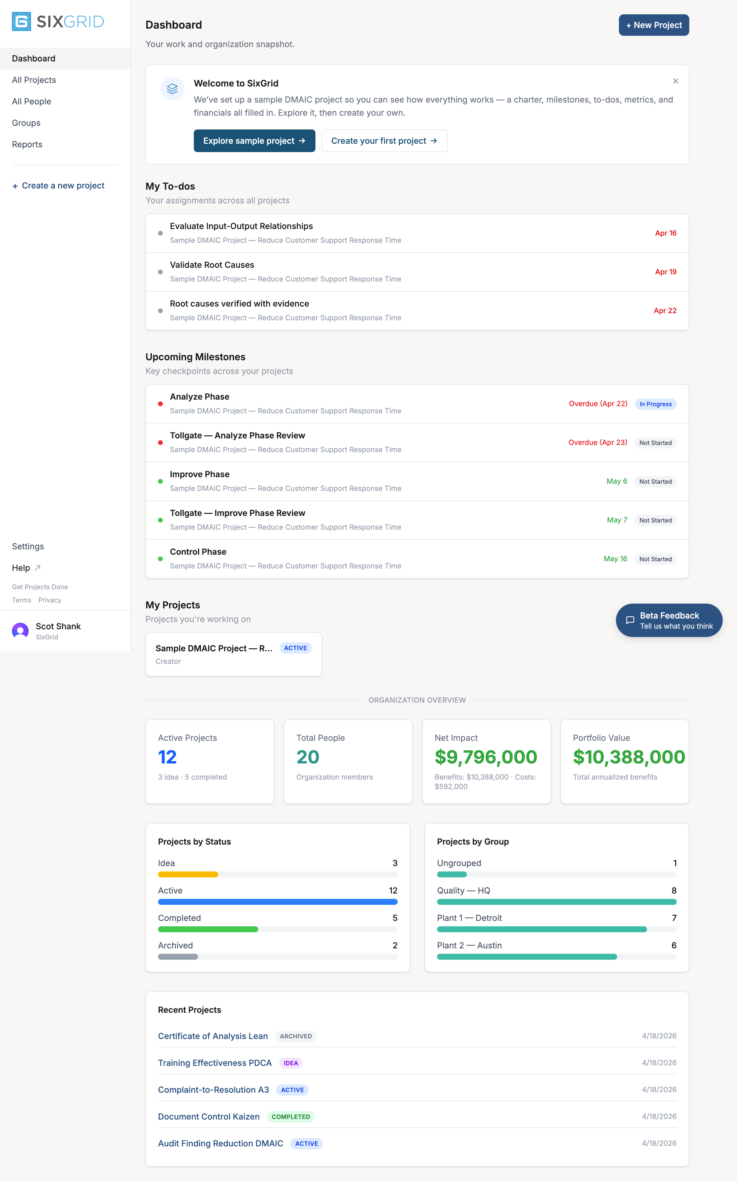 SixGrid isn't a generic project tracker with a Lean Six Sigma skin on it. It was designed from the ground up around how Continuous Improvement actually works.